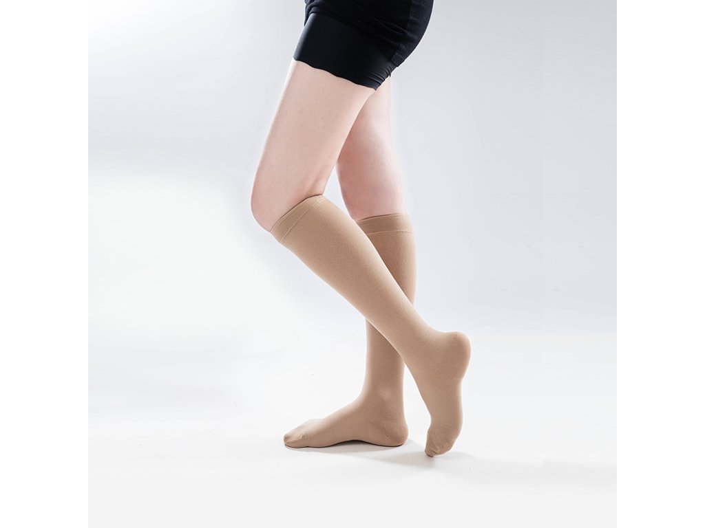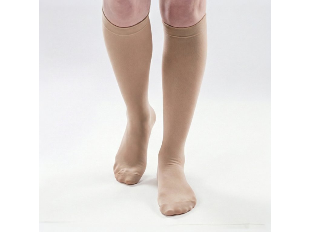 Kompresivní lýtkové punčochy II. kompresní třídy (23–32 mmHg). Používají se k podpoře žilního průtoku krve, prevenci hluboké žilní trombózy, zmírnění symptomů křečových žil a jako doplňková léčba křečových žil na dolních končetinách. Bezešvý design pro pohodlí, s gradientní kompresí (nejvyšší u kotníku, klesající nahoru). Materiál: 70 % nylon + 30 % spandex – prodyšný a elastický. Velikosti S–5XL – vhodné pro muže i ženy. Zdravotnický prostředek